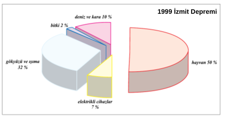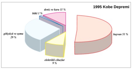 Ülkemiz için bu alanda bir ilk olan çalışmada, her iki deprem için toplanan sıra dışı durumların yalnızca konulara göre dağılımları bakımından benzerlik taşımadığı, aynı zamanda içerik bakımından da uyuştuğu saptanmıştır. İzmit ve Kobe depremleri için düzenlenen aşağıdaki tabloya göre, derlenen sıra dışı olayların; “hayvanlar”da %50, “gökyüzü ve ışıma”da %32, “deniz ve kara”da %10, “elektrikli cihazlar”da %7 ve “bitkiler”de %1’lik bir dağılım göstermektedir.