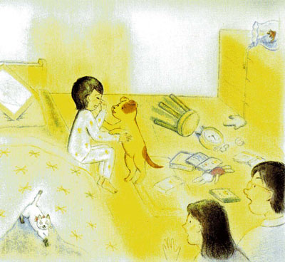 Yere bir şeyler düşer ve kırılır. “Annee, Babaaa!” diye ağlar Gülçiçek. “Buradayız yavrucuğum!” der anne. Baba Gülçiçek’i kucaklar ve birlikte kapı aralığına sığınırlar.